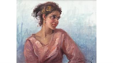 Figura femminileolio su cartone telatofirma in basso a destraMisure: cm 40 x 50