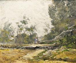 Passeggiata nel boscotempera su cartoncinofirma: in basso a sinistramisure: cm 24,5 x 21,5osservazioni: opera a tergo recante vecchio cartiglio espositivo e cartiglio e timbri galleria Lauro