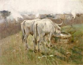 Buoi all'abbeveraggiopastello su cartafirma: in basso a destramisure: cm 49,5 x 62esposizioni: Gennaro Villani: un Napoletano a Parigi, Institut français, Napoli 2017bibliografia: E. Villani (cura), Gennaro Villani: un Napoletano a Parigi, IFItalia, Napoli 2017, pag. 12osservazioni: opera a tergo recante autentica di Ena Villani