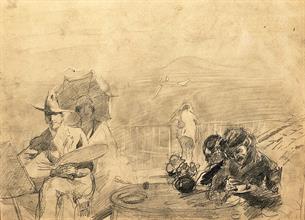La famiglia in terrazzamatita su cartafirma: opera non firmatamisure: cm 23 x 31