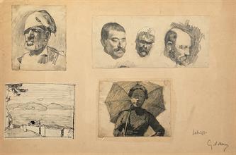 Studi per figuretecnica mista su cartafirma: in basso a destramisure: cm 9,5 x 7,5 / 7,5 x 16,5 / 8,5 x 10 / 8 x 10