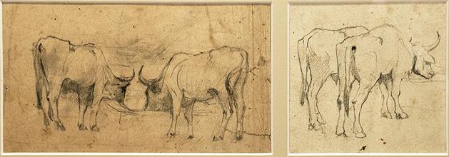 Studi per 'Buoi all'abbeveraggio'matita su cartafirma: opera non firmatamisure: cm 11,5 x 20 / 11,5 x 11,5