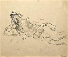 Operaio a riposomatita su cartafirma: in basso a destramisure: cm 23 x 27