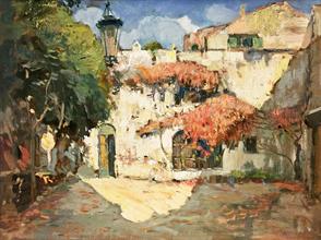 Cortile rossoolio su cartonefirma: in basso a destramisure: cm 49 x 64,5esposizioni: mostra collettiva, Galleria Giosi, Napoli 2010osservazioni: opera a tergo recante cartiglio e timbri Salvatore Serio