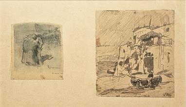 Ritorno 1906 / Casa di pescatorimatita e inchiostro su cartafirma: in basso a destramisure: cm 10 x 8,5 / 15 x 12,5
